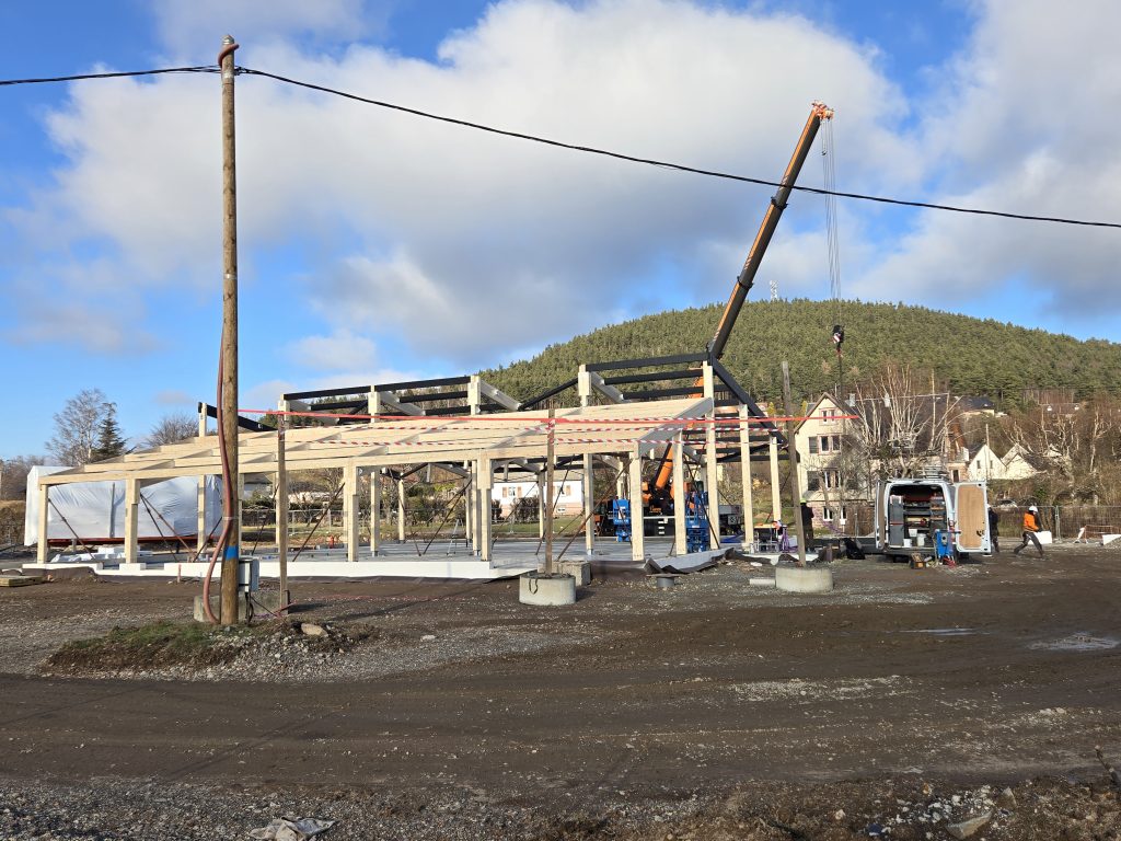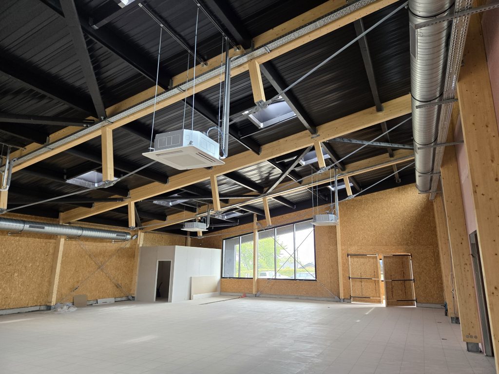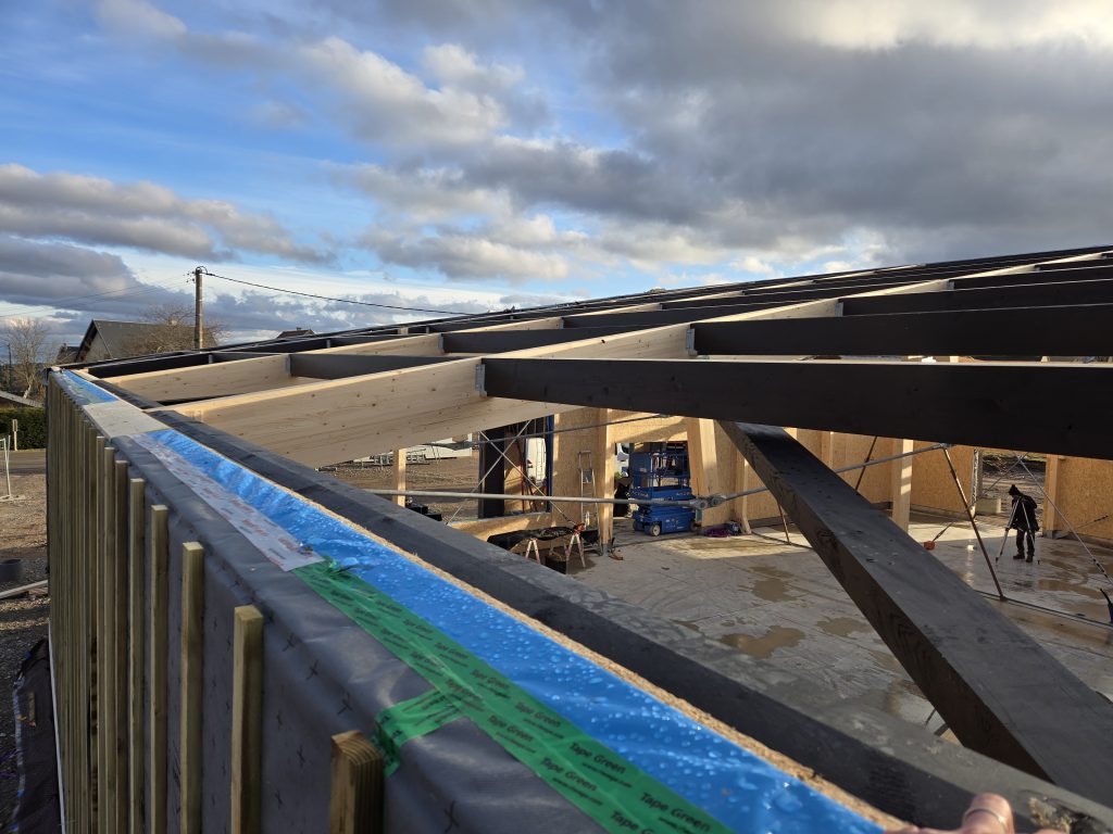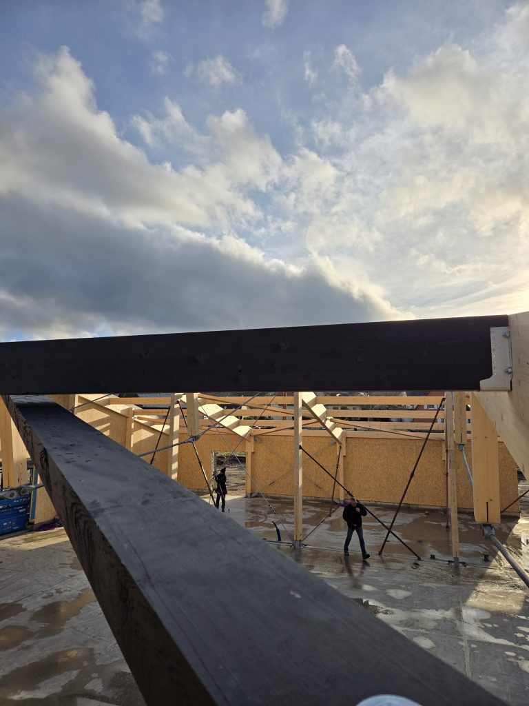 L’ensemble de la charpente a été taillée en usine, seul l’assemblage final des éléments reste à réaliser sur chantier.