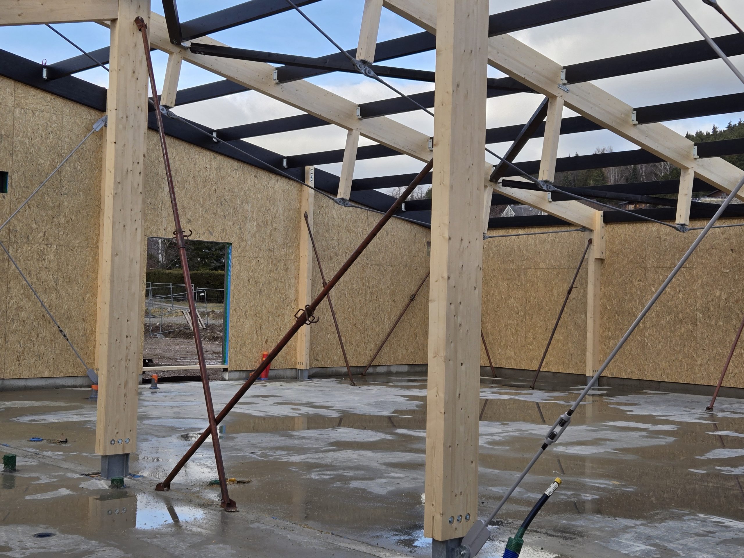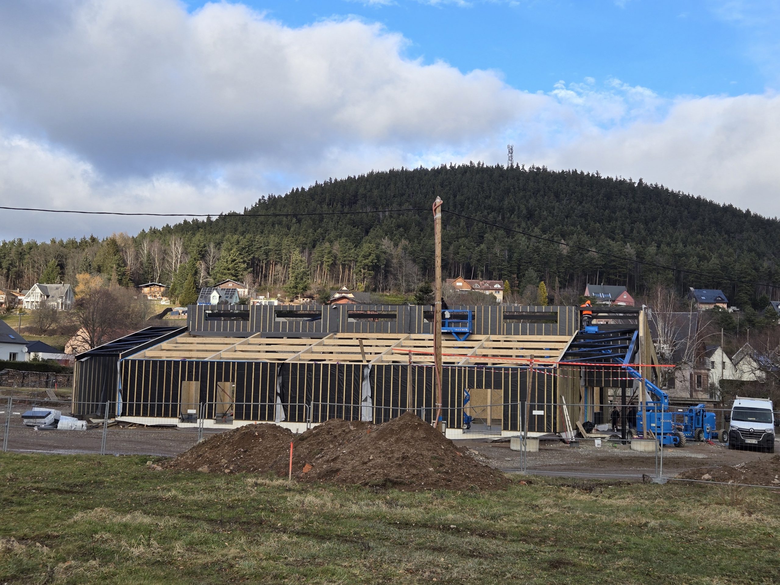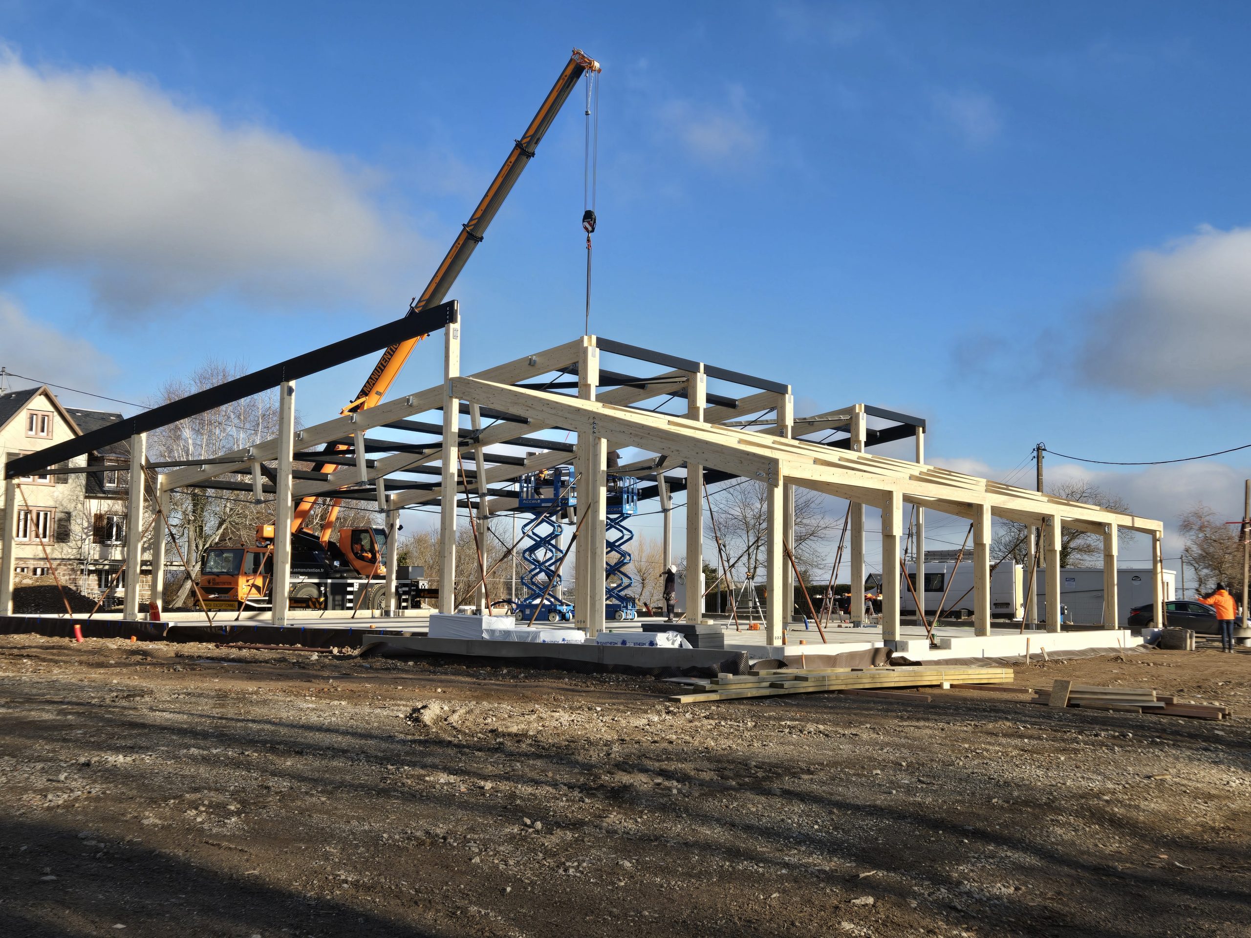 L’ensemble de la charpente a été taillée en usine, seul l’assemblage final des éléments reste à réaliser sur chantier.