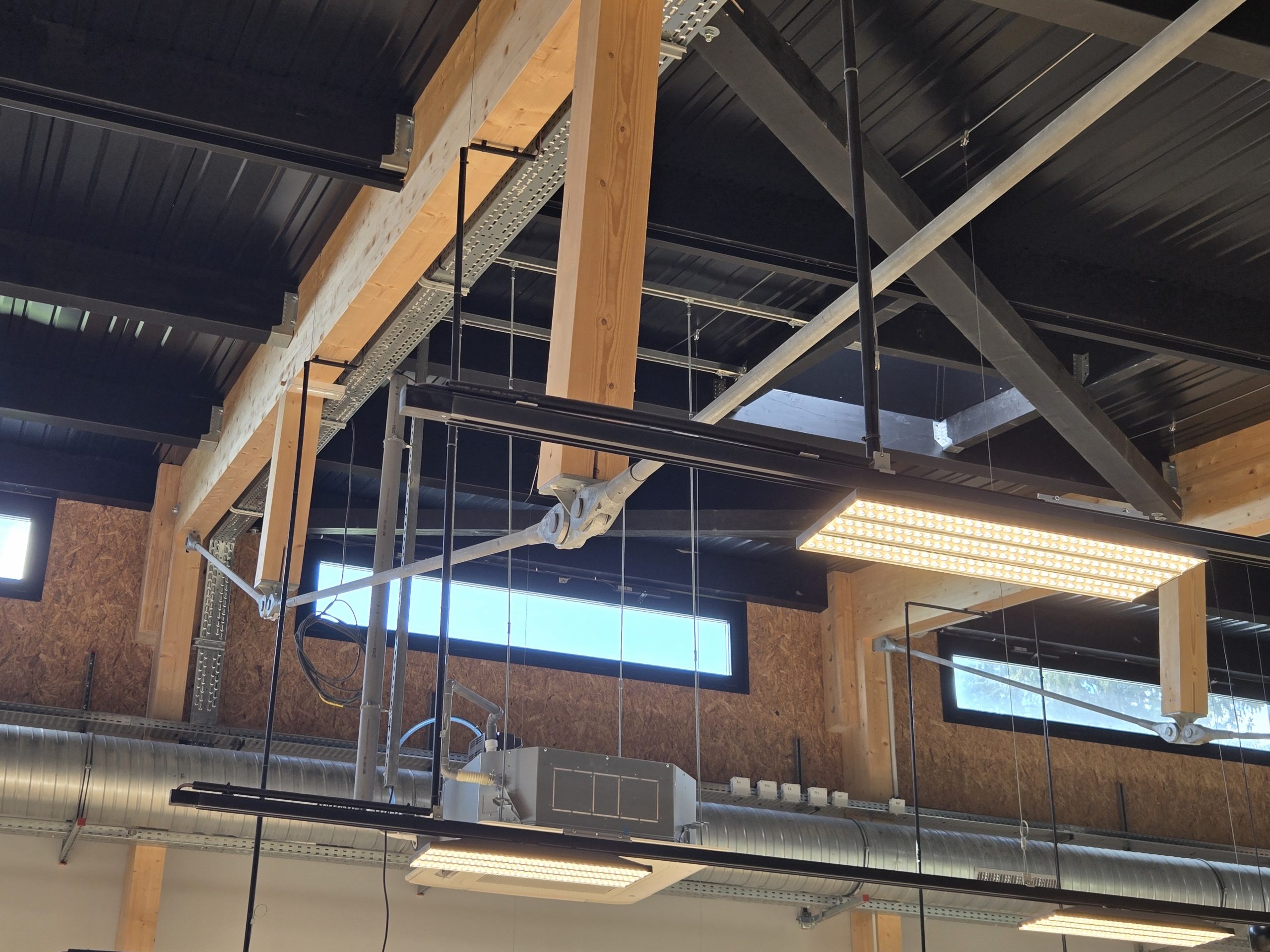 Associé à l’architecte Pierre Baumann , D-BOIS a proposé une structure mixte combinant l’utilisation du bois massif et du bois lamellé-collé associé à une sous tension en acier, l’ensemble étant enveloppé par des façades à ossature bois, et isolation biosourcée en fibre de bois.